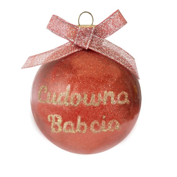 Brokatowa bombka dla Babci to pełna blasku ozdoba choinkowa, która przyciąga uwagę eleganckim zdobieniem. Czerwona kula pokryta błyszczącym brokatem i udekorowana złotym napisem „Cudowna Babcia" to wyjątkowy akcent, który wniesie do wnętrza świąteczny blask i radość.