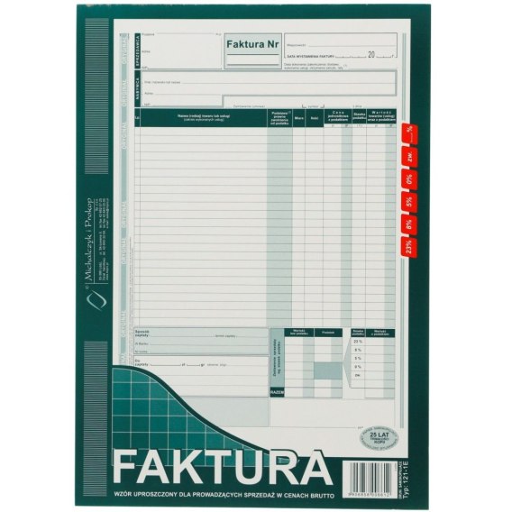 Faktura wzór uproszczony dla prowadzących sprzedaż w cenach brutto