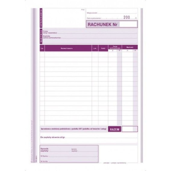 Rachunek dla zwolnionych podmiotowo z VAT