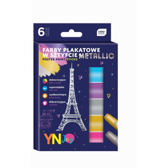 Farby plakatowe w formie kredki. Nie wymagają wody. Supermiękkie i dobrze kryjące. 6 metalicznych kolorów w zestawie.
