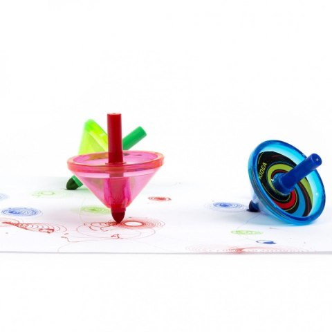 Wirujące markery w trzech intensywnych kolorach: czerwonym, zielonym oraz niebieskim. Można użyć ich jak zwykłych pisaków podczas pisania i rysowania lub zkręcić nimi na kartce i tworzyć kolorowe zawijasy i wyjątkowe, jedyne w swoim rodzaju wzory. Ten unikatowy produkt przyda się w szkole oraz podczas zabawy w kręcanie bączków z kolegami z klasy!