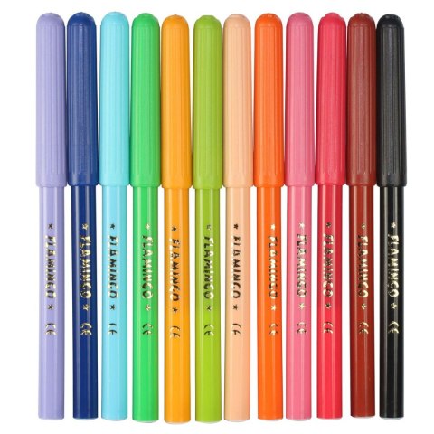 Flamastry łatwospieralne Flamingo 12 kolorów