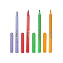 Zestaw 12 różnokolorowych łatwospieralnych flamastrów. Specjalny tusz sprawia, że flamastry można usunąć zarówno z ciała, jak i z ubrań oraz z innych powierzchni, za pomocą mydła i ciepłej wody. Posiadają bezpieczną wentylowaną skuwkę. Produkt nietoksyczny, idealny dla każdego dziecka powyżej 3 roku życia. Długość flamastrów: 14 cm. Średnica flamastrów: 9 mm.