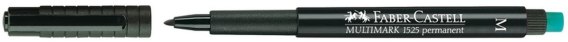 Marker uniwersalny permanentny Multimark Faber-Castell w kolorze czarnym. Z fibrową końcówką i zintegrowaną specjalną gumką. Niezawodny na prawie wszystkich powierzchniach np. metal, szkło, plastik (PP, PET, PVC itd.), płyty CD/DVD, folie do projektorów, kamień, drewno. Szybkoschnący, intensywny tusz odporny na działanie światła i wody. Rozpuszczalny w wodzie. Specjalna zintegrowana gumka sprawnie dokona korekt na prawie wszystkich gładkich powierzchniach. Szerokość linii pisania: M (1 mm). Dostępny 3 szerokościach linii: S, F i M, również w wersji niepermanentnej. Obudowa i zatyczka wykonane z tworzywa pochodzącego z recyklingu.