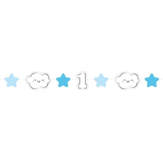 Girlanda papierowa mini Roczek, niebieska, dł. 120 cm, rozm. elementu 8.4 x 6 cm