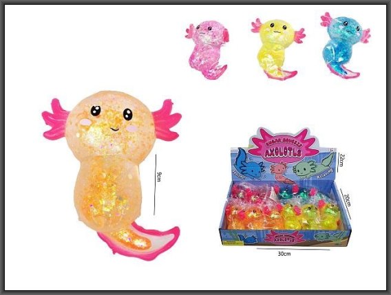 Aksolotl brokatowy do ściskania 9cm 4-kolory