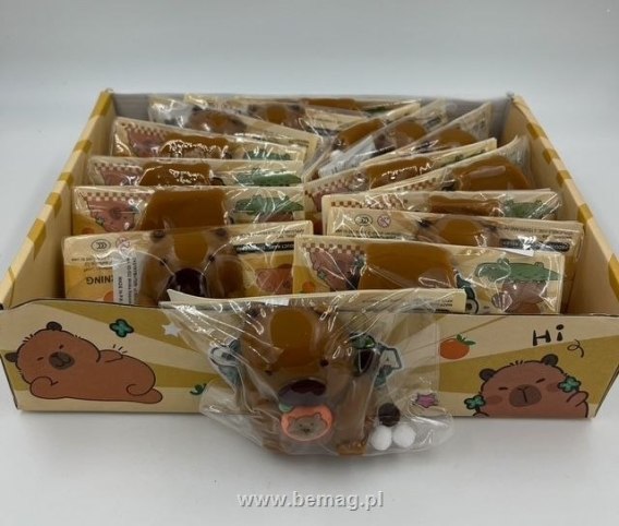 Gniotek zabawka antystresowa KAPIBARAzkuleczkami płaska (mochi taba) 6cm (16sztw displayu) 91404