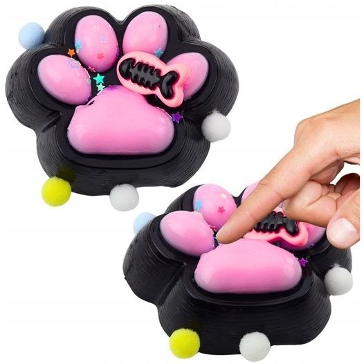 Gniotek Kocia Łapka Squishy - Czarny z Różowymi Poduszeczkami i Koralikiem z Rybką