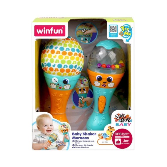 Kolorowe, muzyczne grzechotki marki Winfun z serii Beat Bop Baby to idealna propozycja dla najmłodszych dzieci już od 3. miesiąca życia. Zestaw zawiera 2 różne marakasy, które rozwijają zmysły i zachęcają do pierwszych aktywności rytmicznych.