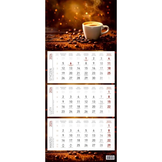 Kalendarz ścienny EKONOMICZNY KAWA kalendarz trójdzielny 680mm x 295mm Wydawnictwo Wokół Nas (KS 045)