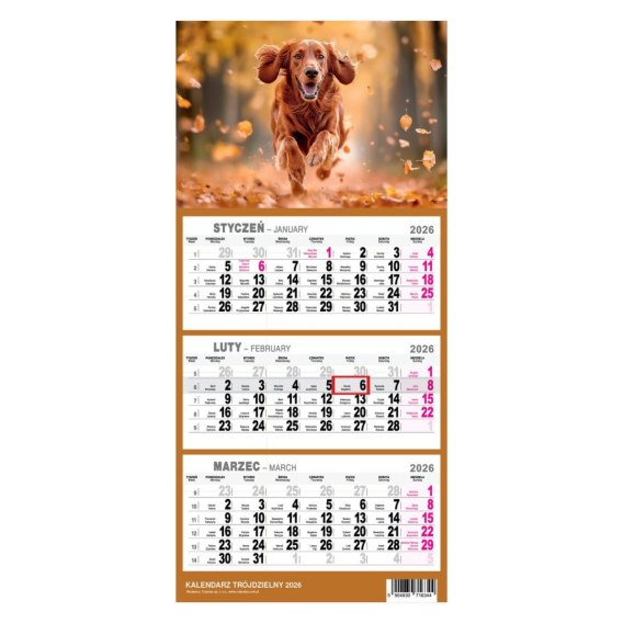 Kalendarz ścienny PIES A5 210mm x 450mm Press