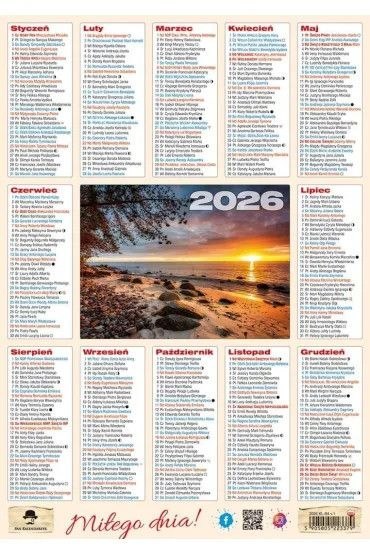 Kalendarz 2026 LISTKOWY. W formie plakietki/listka , 12 miesięcy, imieniny, fazy księżyca, święta. Praktyczny i poręczny kalendarz.