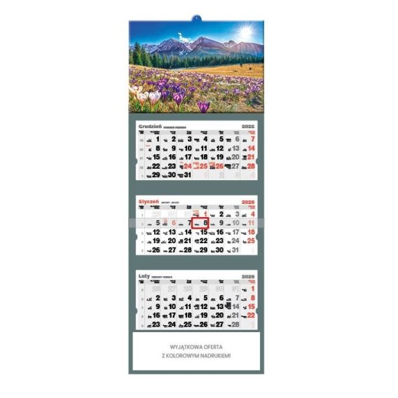 Kalendarz ścienny ZACHÓD SŁOŃCA trójdzielny A3+ Jotan (T43)