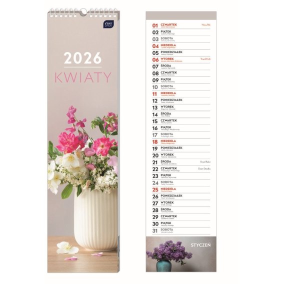 Kalendarz ścienny paskowy 135mm x 500mm Interdruk (KWIATY)