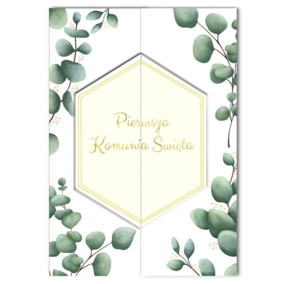 Kartka składana Karnet A5 KOMUNIA ROZ EUKALIPTUS A5 Henry (5907465664905)