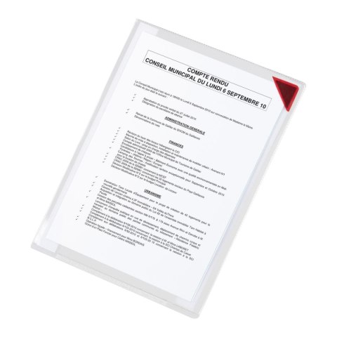 Samoprzylepna kieszeń na dokumenty Djois x Tarifold z serii Kang Easy Clic w rozmiarze A4 otwierana po przekątnej z łatwym narożnym zamknięciem na czerwony klips magnetyczny. Na tyle kieszeni znajdują się dwa samoprzylepne paski, które dają możliwość wielokrotnego przyklejenia do gładkich i płaskich powierzchni, bez użycia śrub i gwoździ. Błyskawiczny montaż i demontaż, nie pozostawia śladów. Kieszeń jest transparentna, doskonała do użycia na szkle, z możliwością dwustronnej prezentacji dokumentów. Wykonana z wytrzymałego, przyjaznego dla środowiska PVC 200 µ. Możliwe użycie zarówno w pionie jak i w poziomie. Dostarczana w opakowaniu po 5 szt.