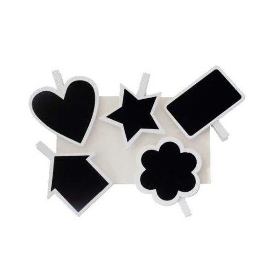 Klamerki kredowe KSZTAŁTY, 5 sztuk w opakowaniu, można pisać po nich kredą lub specjalnym niezmywalnym markerem, Doskonałe do zdobienia,