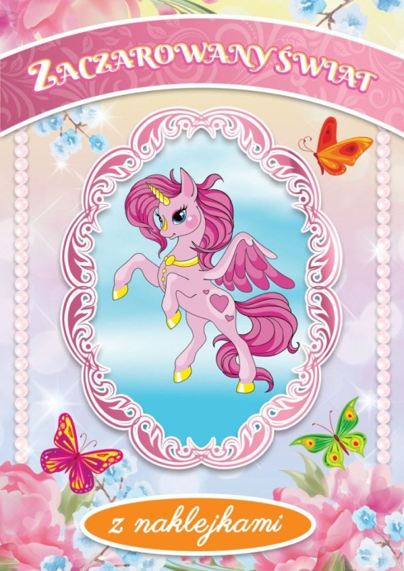 Zaczarowany świat - książeczka do kolorowania z zadaniami dla dzieci. W środku duża wkładka z naklejkami