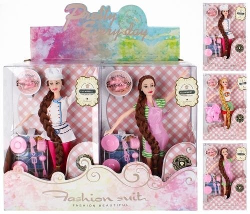 Zalety produktu: Każda mała dziewczynka w swojej kolekcji zabawek musi posiadać lalkę stworzoną na wzór lalek Barbie. Ten zestaw z lalką Kucharką MEGA CREATIVE to idealne rozwiązanie na spędzenie wspólnego czasu ze swoją pociechą. Lalka 28 cm Kucharka występuje w trzech wariantach ubrana w: fartuch, czepek kucharski, spódniczkę, bluzeczkę lub w sukienkę, buciki. Dodatkowo do lalki dołączono mały zestaw niezbędnych akcesoria kuchennych tj.: podbierak, nóż, chochelka oraz garnki. Pakowana w display po 6 szt. Lalka wykonana z plastiku oraz materiału. Wymiary/waga/baterie: Wymiary opakowania(dł. x wys. x gł.) [cm] 20x32x6, wymiar opakowania-display (dł. x wys. x gł.) [cm] 41x33x18, wymiary produktu [cm] : 28 cm. Waga produktu w opakowaniu (kg.) 0,25 kg ,waga opakowania-display (kg.) 1,81 kg. Przeznaczona dla dzieci od lat: 3+. Nie wymaga zasilania bateriami. W kartonie zbiorczym po 36/72 szt.
