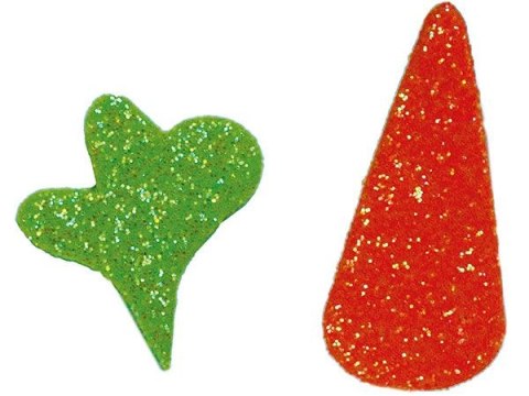 Naklejki piankowe brokatowe, marchewki 15 x 32 mm, natki marchewki 20 x 22mm. 56 sztuk.