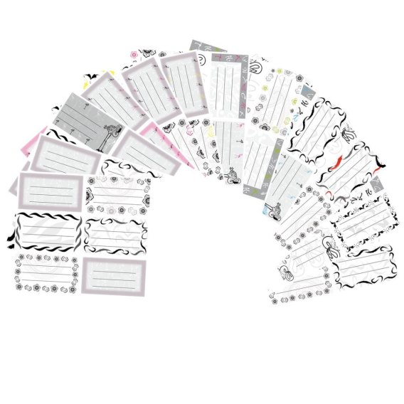 - Naklejki na zeszyty po 6 sztuk na arkuszu