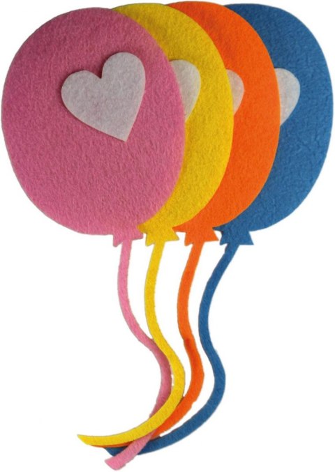 Filcowe baloniki 3D, wymiary: 83 x 249 mm, kolory: czerwony, niebieski, żółty, pomarańczow. 4 sztuki.