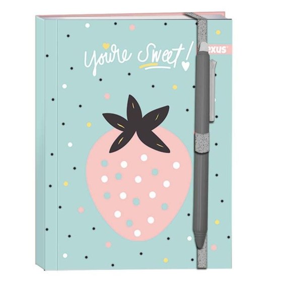 Pamiętnik zamykany na gumkę z długopisem w zestawie.