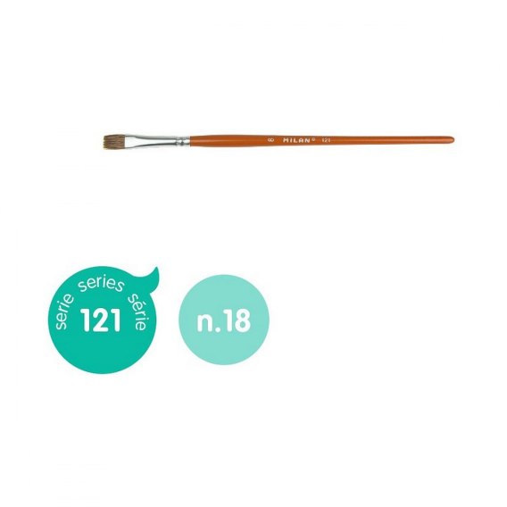 Szkolny płaski pędzel serii 121 nr 16 z krótkim drewnianym trzonkiem. Skład: 70% naturalnego włosia koziego + 30% syntetyczne. Brązowe lakierowane wykończenie i aluminiowa skuwka bez spawania, odporna na rdzewienie. Bardzo miękkie włosie idealne do technik akwarelowych, wodnych i plakatowych. Lepsze zatrzymanie wody i farby. Gładsza linia. Lepsza odporność i elastyczność, co ułatwia odzyskanie kształtu po jego użyciu. Szerokość włosia: 13 mm. Grubość włosia: 4 mm. Długość włosia: 16 mm. Długość pędzla: 195 mm.
