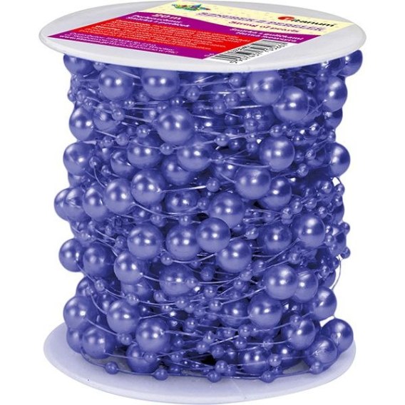 Perełki na żyłce, wykonane z plastiku. Na jednej żyłce znajdują się perełki w dwóch rozmiarach, nie przesuwają się po żyłce, można ją dowolnie przycinać. Długość żyłki: 20 m, kolor: niebieski meteorytowy.