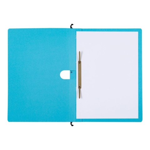 Skoroszyt zawieszkowy wykonany z mocnego kartonu. W zestawie przesuwny szyldzik z wymienną etykietą opisową. Wewnątrz metalowe zapięcie skoroszytowe, zabezpieczające dokumenty przed wypadaniem. Skoroszyt mieści do 220 kartek.