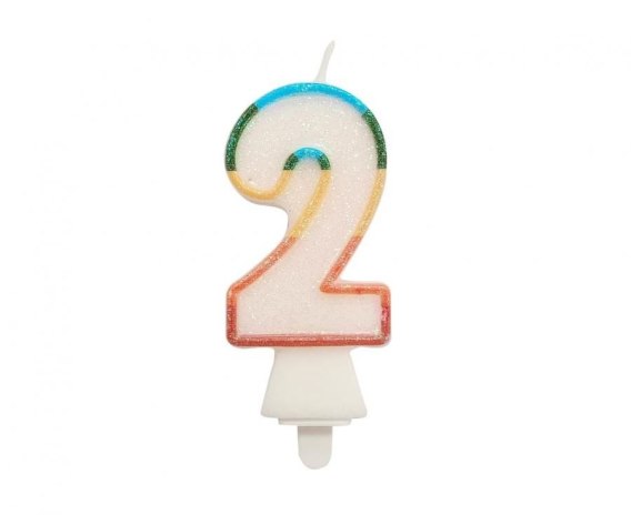 ŚWIECZKA CYFRA 2, TĘCZOWA, BIO BROKAT