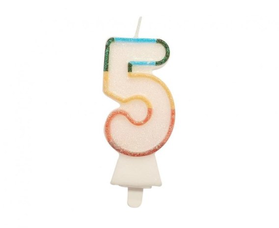 ŚWIECZKA CYFRA 5, TĘCZOWA, BIO BROKAT