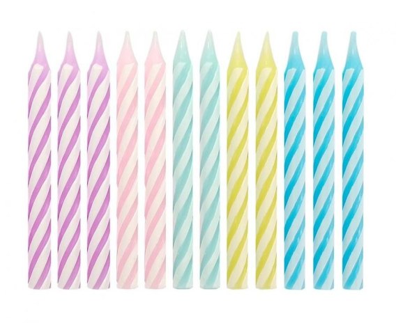 Świeczka urodzinowa kolorowe w białe paski, 24szt., 6 cm. Godan (SU-MP24)