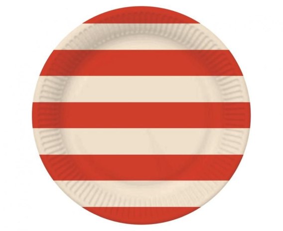Talerz jednorazowy paski czerwono beżowe papier śr. 180mm 6 szt Godan (PG-TPA2)
