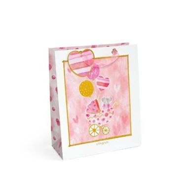Torba prezentowa wózeczek z balonami różowy, L, 5szt. [mm:] 320x260x 120 Argo (257045)