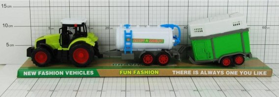 TRAKTOR Z PRZYCZEPAMI POD KLOSZEM