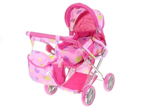 Wózek głęboki dla lalek, profilowana rączka, nosidełko, torba, z koszem funkcja spacerówki, wymiary: 66x58x36cm, BOX