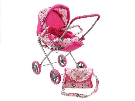 Wózek dla lalek, głęboki, z koszem, składany daszek, wyjmowane nosidełko, torebka, 2w1 (z funkcją spacerówki), PVCB