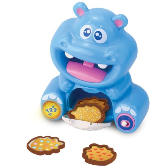 Dwujęzyczny Hipcio (polski/angielski) liczy kolorowe ciasteczka, łakomie się nimi zajadając . Kiedy Dziecko naciśnie na stópkę rozpocznie zabawę w liczenie oraz usłyszy zabawne dźwięki i melodie. Nakarm Hipcia i policz ile jest w stanie zjeść ciasteczek. Po wyjęciu ciasteczek z brzuszka rozpoczynamy zabawę od nowa.
