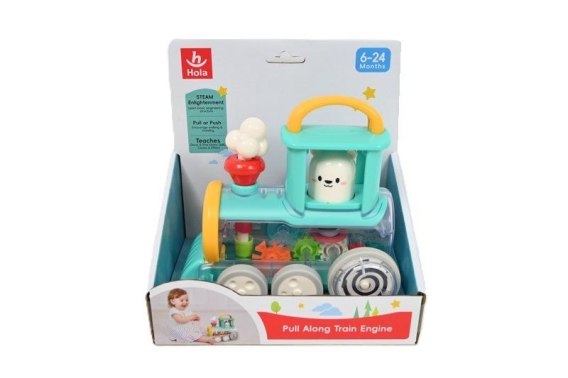 Lokomotywa sensoryczna to wyjątkowa zabawka edukacyjna przeznaczona dla dzieci od 6. miesiąca życia. Łączy w sobie ruch, światło i dźwięk, aby w pełni angażować zmysły malucha i wspierać jego rozwój już od pierwszych chwil zabawy. Lokomotywa wyposażona jest w kolorowe trybiki, obracające się piłeczki oraz figurkę misia w kabinie, które wprowadzają elementy zaskoczenia i radości. Dziecko może pchać ją, ciągnąć na sznureczku lub obserwować jej samodzielne działanie. Efekty świetlne i dźwiękowe dodatkowo wzmacniają atrakcyjność zabawy i zachęcają do ruchu. Zabawa lokomotywą wspiera rozwój koordynacji ruchowej, logicznego myślenia oraz rozumienia zasady przyczyna-skutek. Transparentna obudowa pozwala dziecku obserwować mechanizmy wewnętrzne, co pobudza ciekawość i uczy spostrzegawczości.