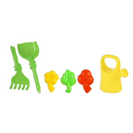 - zestaw do zabawy w piaskownicy - w zestawie znajdują się 6 elementów: konewka mini, 3 foremki w kształcie liści, średnie grabki oraz łopatka - produkt wykonany jest z trwałych i bezpiecznych materiałów, dzięki czemu może nim się bawić każde dziecko - zestaw występuje w różnej konfiguracji kolorów - wymiary: 100mm (wys.) x 265mm (dł.) x 110mm (szer.)