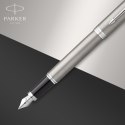 Zestaw podwójny PARKER IM, zawierający długopis i pióro wieczne ze stali szlachetnej z chromowanym wykończeniem oraz oznaczone znakiem marki Parker pudełko upominkowe, to doskonały prezent dla osób wkraczających w życie zawodowe. Elegancki, dopracowany i profesjonalny długopis oraz pióro wieczne PARKER IM są idealnymi partnerami o nieograniczonym potencjale. Elegancki, zwężany kształt doskonale współgra z innowacyjnymi wzorami, tworząc efektowny wyraz osobistego stylu. Chromowane wykończenia o wysokim połysku uzupełniają korpus ze stali szlachetnej, dzięki czemu to pióro PARKER jest idealnym przyborem do pisania dla studentów i profesjonalistów. Chowana z przyjemnym kliknięciem końcówka kulkowa i atrament Quinkflow zapewniają wyjątkowo gładkie i niezawodne pisanie. Pasują też do nich wkłady wymienne PARKER QUINK do długopisów i długopisów żelowych. Pióro wieczne wyposażone zostało w stalówkę ze stali szlachetnej z końcówką medium oraz długim, niebieskim nabojem Quink, dzięki czemu pisanie nim jest jeszcze bardziej wyrafinowane Każdy detal zapewnia niesamowite wrażenia podczas pisania, zgodnie z ponad 125-letnią tradycją marki PARKER.
