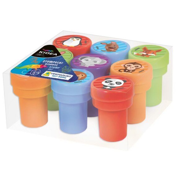 Stempelki w wygodnym plastikowym pudełeczku, w nowych wzorach ze zwierzątkami: lama, kangur, tygrys, koala, wielbłąd, zebra, delfin, koń i pies. Są samotuszujące, więc nie wymagają używania dodatkowej poduszki z tuszem.