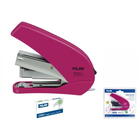 Zszywacz metalowy różowy z serii ACID w plastikowej obudowie z systemem ENERGY SAVING dzięki któremu potrzebujemy o 30% mniej siły do zszywania. Zszywa do 20 kartek. Posiada przycisk ułatwiający wymianę zszywek oraz metalowy rozszywacz z tyłu. Na zszywki w rozmiarach: 24/6 i 26/6. Ładowność: 70 zszywek. Zawiera opakowanie zszywek 1000 szt. Zawiera opakowanie zszywek 1000 szt. Oryginalny produkt stworzony przez własny dział badawczo-rozwojowy MILAN. Rozmiar zszywacza: 9 x 7,3 x 3,3 cm. Waga: 0,15 kg.