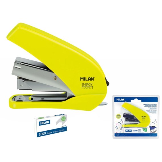 Zszywacz metalowy żółty z serii ACID w plastikowej obudowie z systemem ENERGY SAVING dzięki któremu potrzebujemy o 30% mniej siły do zszywania. Zszywa do 20 kartek. Posiada przycisk ułatwiający wymianę zszywek oraz metalowy rozszywacz z tyłu. Na zszywki w rozmiarach: 24/6 i 26/6. Ładowność: 70 zszywek. Zawiera opakowanie zszywek 1000 szt. Oryginalny produkt stworzony przez własny dział badawczo-rozwojowy MILAN. Rozmiar zszywacza: 9 x 7,3 x 3,3 cm. Waga: 0,15 kg.